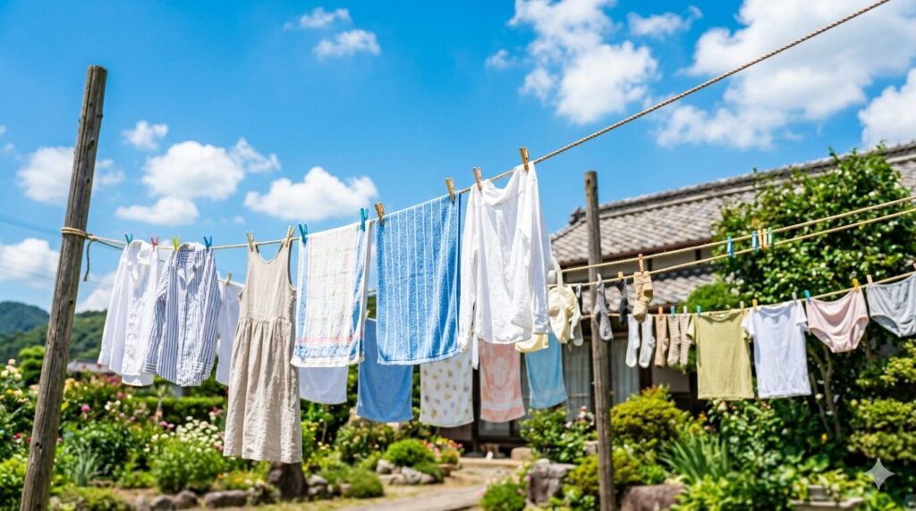 干し方にもコツがあります。洗濯物の間隔を広めに取って空気の通り道を作るのがポイント。